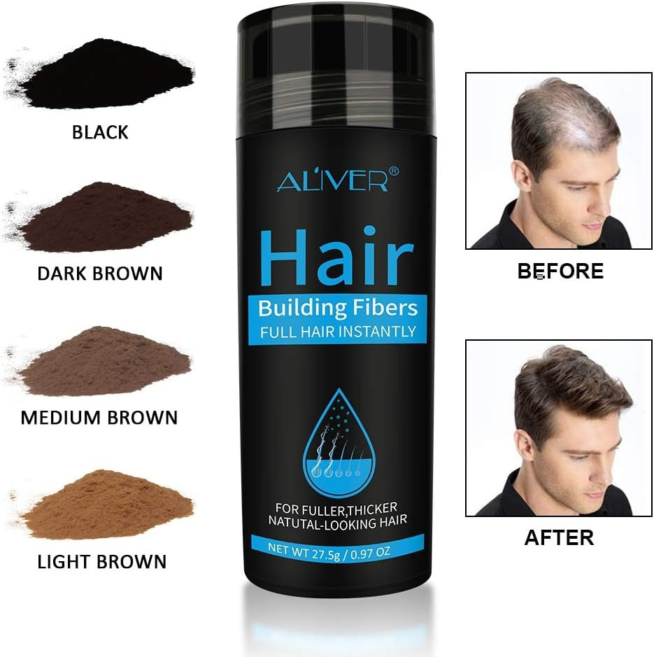 Made from natural keratin fibers, these lightweight particles cling electrostatically to existing hair strands, instantly covering bald spots and giving your hair a natural, dense appearance.