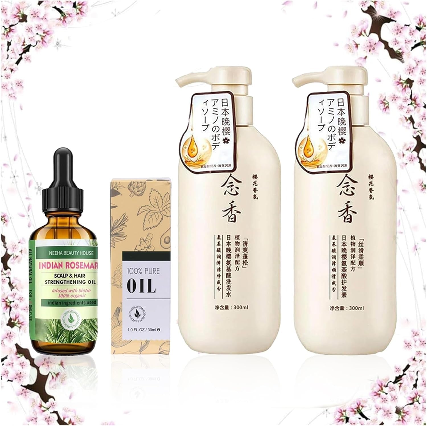 Sakura Hair Growth Set – Shampoo, Conditioner & Rosemary Oil